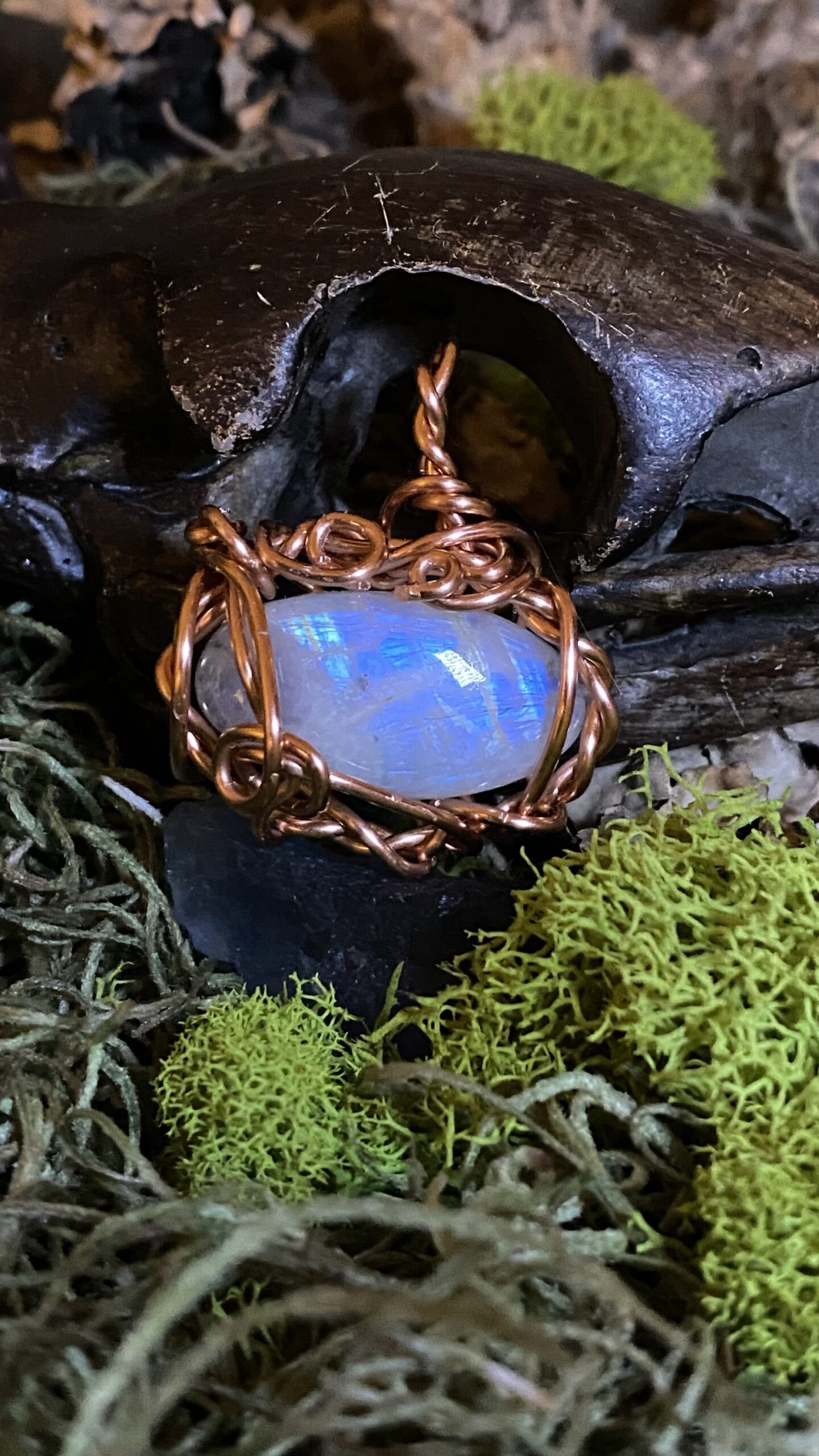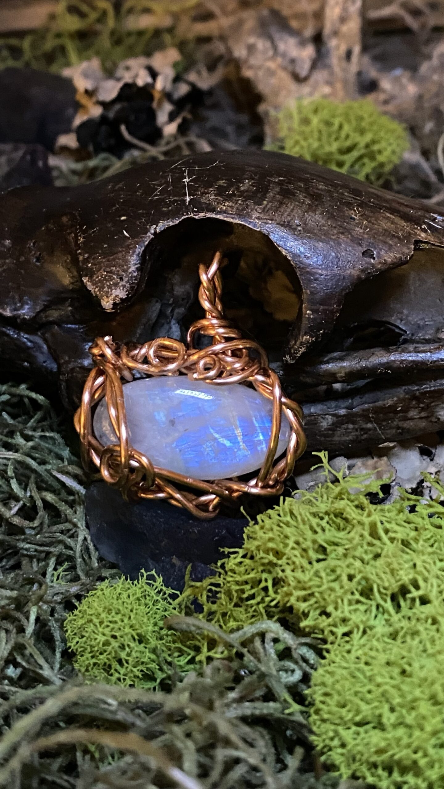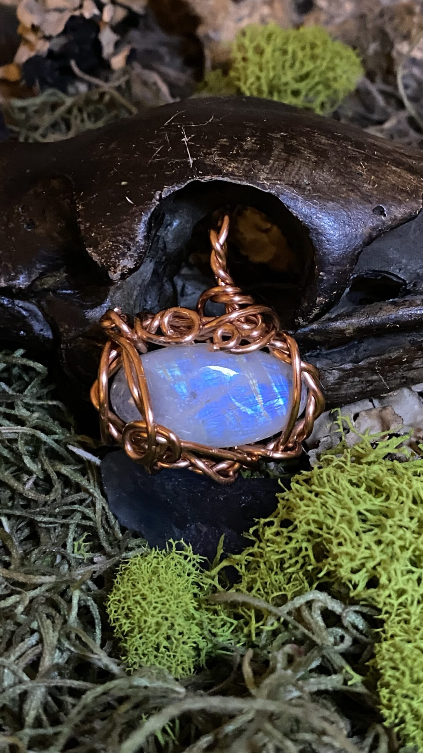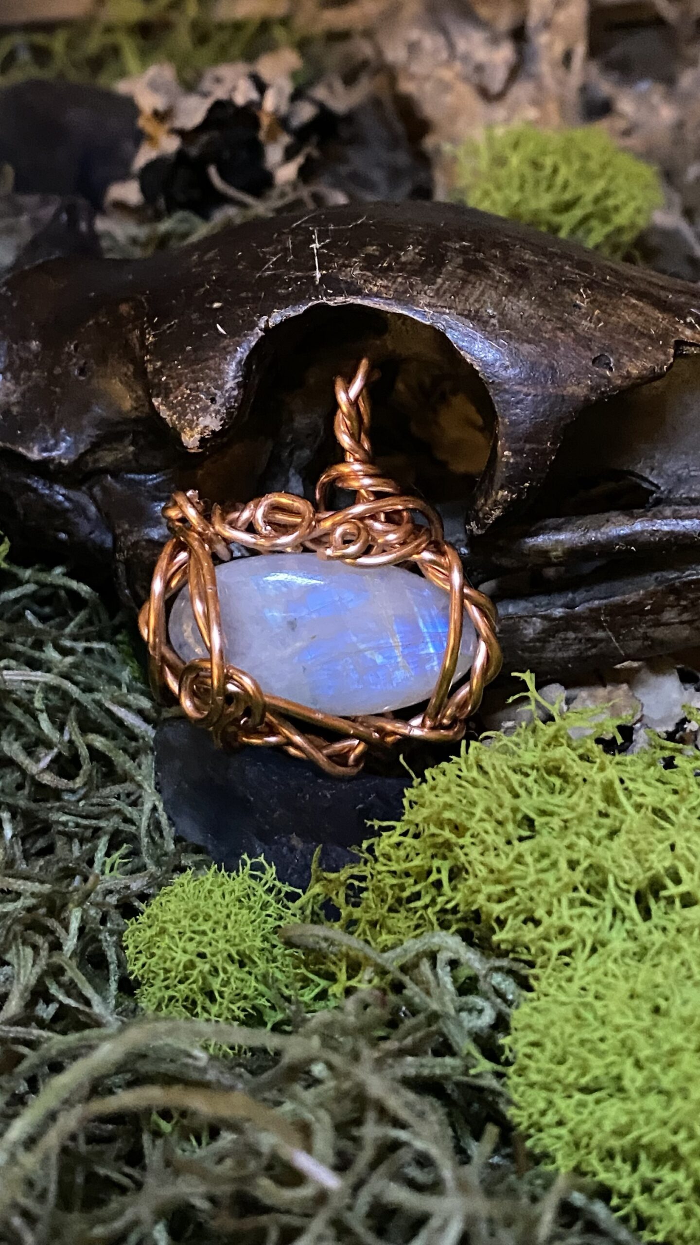 Moonstone wrapped in raw copper, comes hung on a raw copper chain
